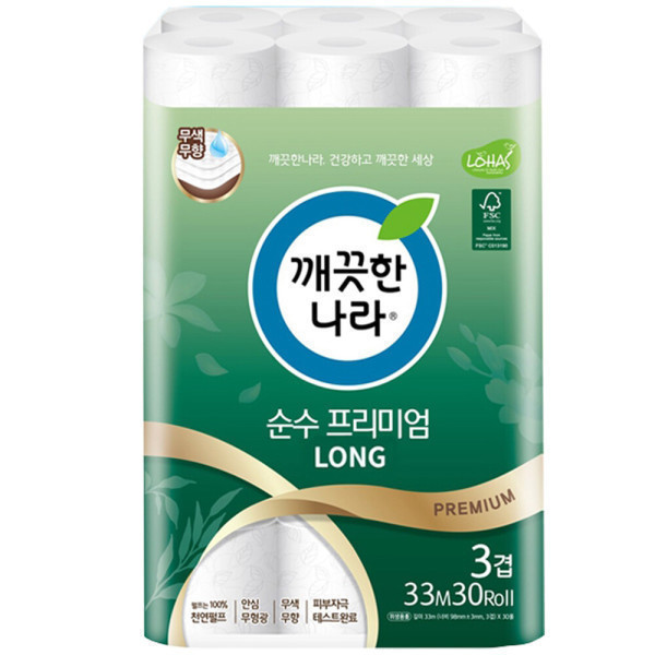 깨끗한나라 순수프리미엄 3겹 33m, 30롤,
