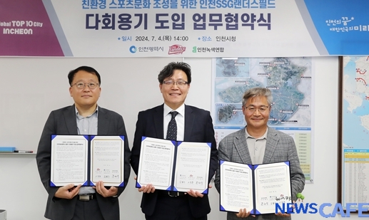 [뉴스카페]인천광역시와 인천 SSG랜더스, 인천녹색연합은 7월 4일 친환경 스포츠문화 조성을 위한 다회용기 도입 업무협약을 체결하고, 오는 6일 개최되는 2024 KBO리그 올스타전부터 다회용기를 도입한다고 밝혔다.