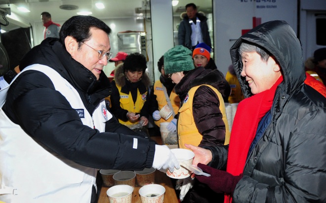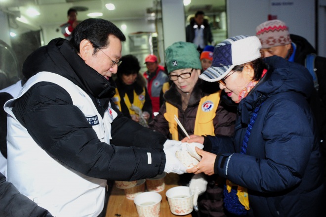 이 나눔 행사에서 이용섭 시장은 적십자사 회원들과 함께 무등산 등반객들을 위한 떡국 배식 봉사 활동을 했다.