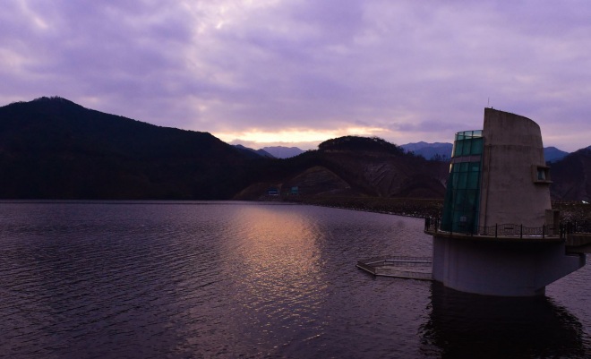 [뉴스카페/이경문기자] 어둠이 물러나자, 황금빛 새 해가 장성호 위로 넘실댄다.