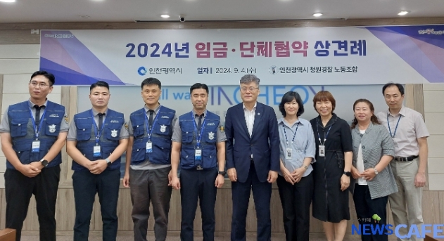 [뉴스카페]인천광역시와 인천광역시 청원경찰 노동조합은 9월 4일 본청 영상회의실에서 ‘2024년 청원경찰 임금 및 단체협약’ 추진을 위한 상견례를 진행했다고 밝혔다.