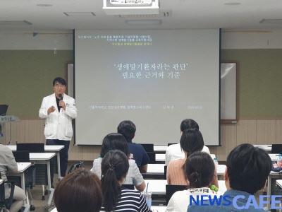 주요 내용은 1강 호스피스-완화의료의 이해와 지역사회 중심의 통합돌봄이 필요한 이유에 대한 기본교육, 2강 대상자를 생애말기로 판단하는 근거 및 확인방법, 3강 실제 가정호스피스 사례를 통해 임종환자를 어떻게 관리할 것인가에 대한 실무 순으로 구성됐다.
