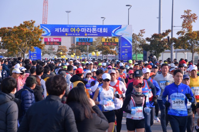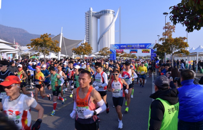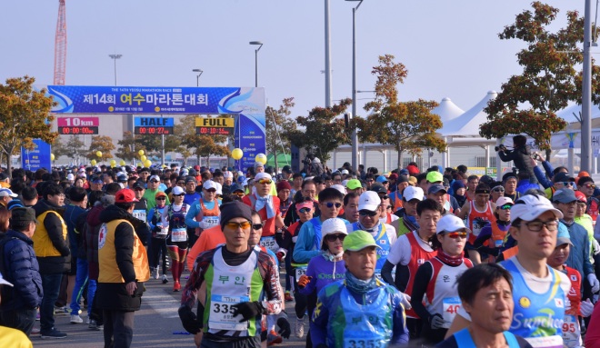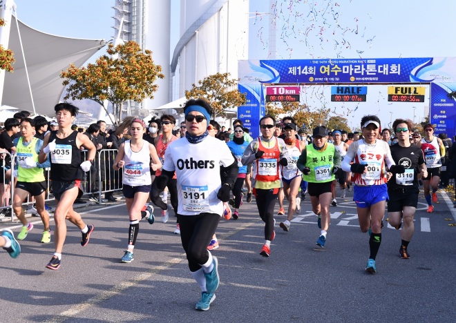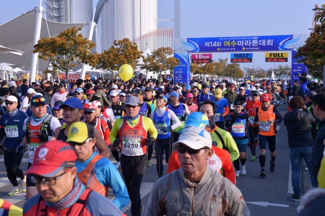 [뉴스카페/이경문기자] 13일 오전 제14회 여수마라톤대회 선수들이 출발점인 전남 여수 엑스포광장을 힘차게 나서고 있다.