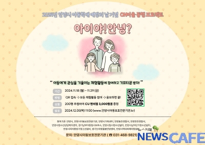 [뉴스카페]안양시는 오는 29일까지 아동학대 예방의 날(11. 19.)을 기념해 관내 유관기관과 함께 ‘온라인 아동학대 연합캠페인’을 진행한다.