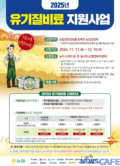 [뉴스카페]강화군(군수 박용철)이 12월 10일까지 ‘2025년 유기질비료 지원사업’ 신청을 받는다.