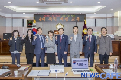 [뉴스카페]인천 중구의회(의장 이종호)는 지난 25일 의회 소회의실에서 의원 및 직원을 대상으로 4대 폭력 예방교육을 실시했다고 밝혔다.