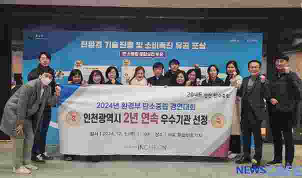 인천시(시장 유정복)는 5일 서울 문화비축기지에서 개최된'2024 탄소중립 경연대회'에서 환경부장관 기관 표창을 수상했다고 밝혔다.