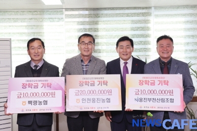 [뉴스카페] 재)옹진군인재육성재단(이사장 문경복)은 17일 인천옹진농협, 백령농협, 옹진부천산림조합으로부터 총 4천만원의 장학금을 기탁받았다고 밝혔다.