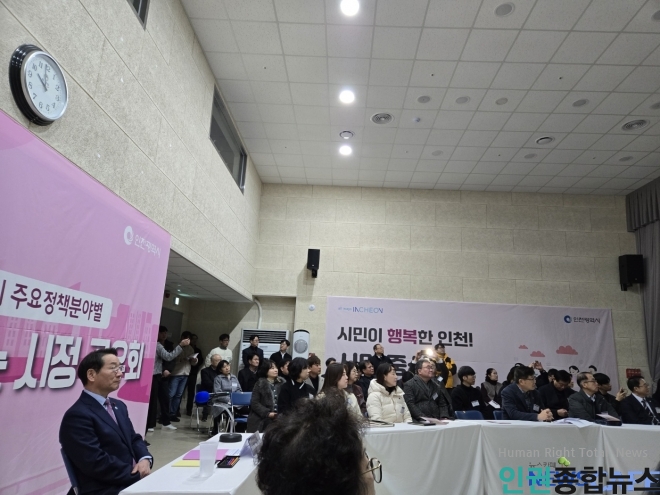 [인권종합뉴스/김윤경기자] 인천광역시(시장 유정복)는 1월 8일 남동구노인복지관 대강당에서 ‘시민 중심 복지 실현’을 주제로 시정 공유회를 개최했다. 이번 행사는 연말·연초 공직 내부 보고 방식을 탈피해, 시민들에게 정책 성과와 계획을 직접 설명하고 의견을 수렴하기 위해 마련되었다.