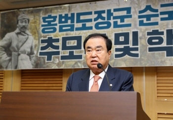 끝으로 문 의장은 "기념 사업회와 대한민국 국회가 지속적으로, 홍범도 장군의 유해를 고국으로 모실 수 있도록 최선을 다하겠다”고 말했다.
