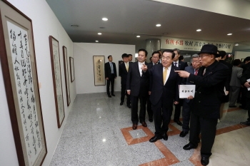 문 의장은 “서예전의 주제는 ‘유소불위(有所不爲)’다. '맹자'에 나오는 말로 ‘하지 않는 일이 있은 뒤에야 큰일을 할 수 있다’는 뜻을 담고 있다. 옳고 그름을 따져 탐욕을 버리고 바른 일을 행해야 한다는 가르침이다”라고 설명했다.