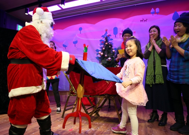 공연은 산타의 마술편지를 받은 사람이 다른 사람들에게 마술을 선물한다는 내용으로, 오전 11시와 오후 4시 총 2회 진행됐다.