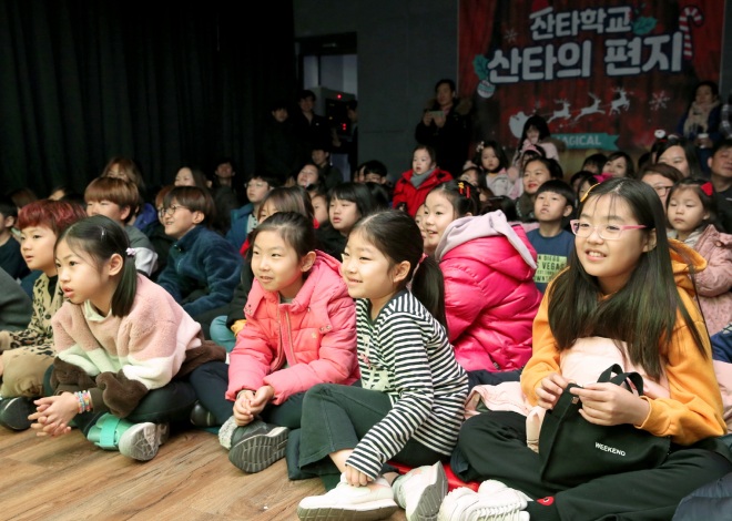 21일(토) 금천 마을활력소 어울샘에서 어린이들이 ‘산타의 편지’ 연극 공연을 즐겁게 관람하고 있다
