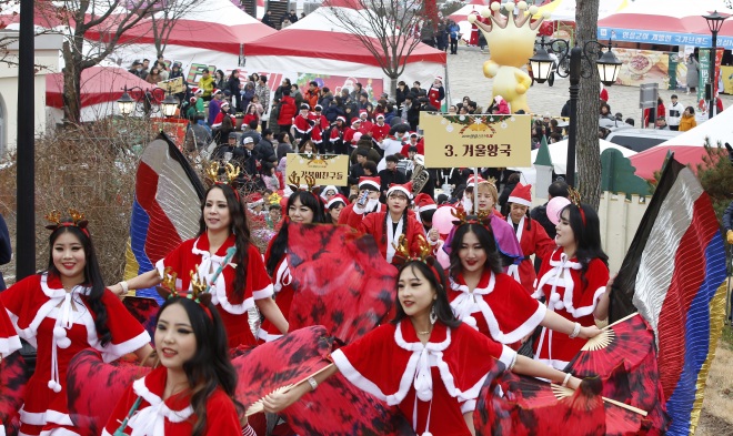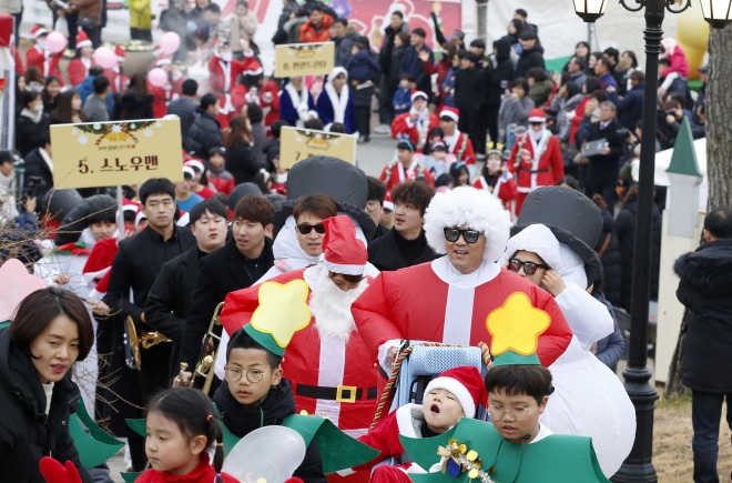 [뉴스카페/이경문기자] 2019 임실 산타축제가 21일 전북 임실군 치즈테마파크 일원에서 열리 가운데 행사장을 찾은 수많은 관광객들이 산타퍼레이드 공연을 지켜보고 있다. 이번 행사는 21일부터 25일까지 5일간에 걸쳐 진행된다