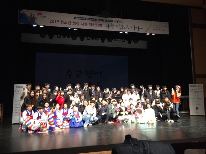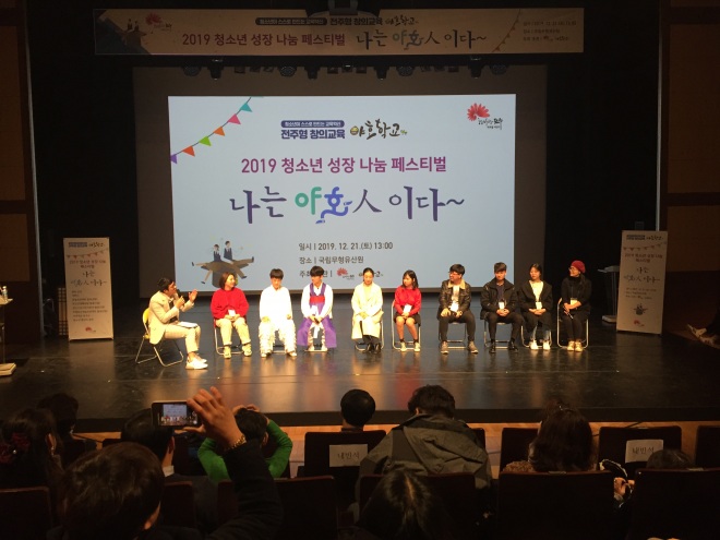 전주시 야호학교는 21일 국립무형유산원에서 로컬·지역연계프로젝트 등 지난 1년간 함께한 청소년과 학부모, 틔움교사, 야미단과 함께 소통하고 공감하며 서로를 격려해주는 ‘2019 전주시 청소년 성장 나눔 페스티벌’을 개최했다.