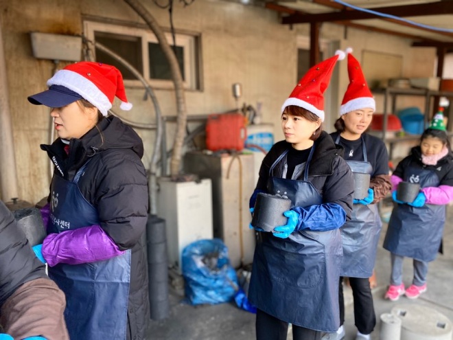 이날 전주 화정초등학교 학부모회 회원과 가족 20여명은 전주시자원봉사센터에 자원봉사활성화를 위해 36만원을 기탁하고 자원봉사활동에 직접 동참하였다. 이 기금은 지난 10월 세병호에서 진행된 ‘전주다움 아이장터’를 통해 얻어진 기금으로 화정초학부모들이 직접 한땀한땀 만든 수세미와 머리핀을 판매하고 얻어진 기금으로, 올 겨울 우리의 이웃들이 따뜻한 겨울을 함께 보낼 수 있었으면 하는 마음들이 모아져 연탄나눔과 봉사활동을 함께했다고 밝혔다.