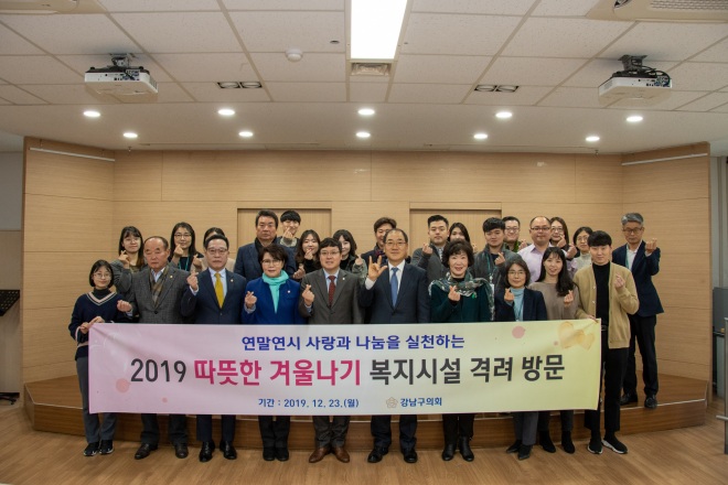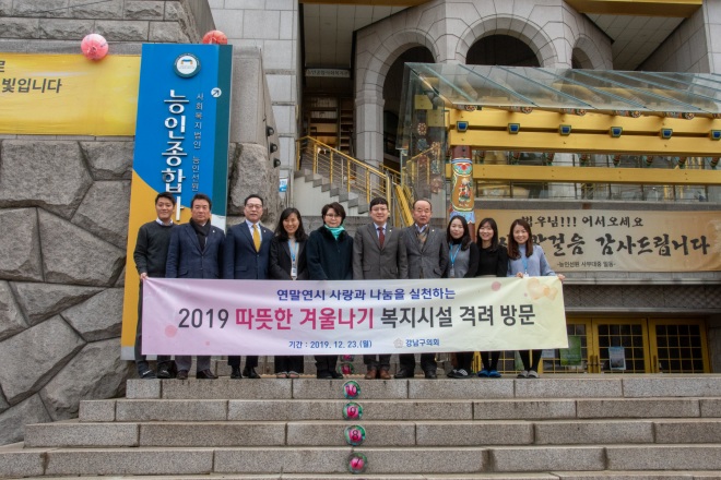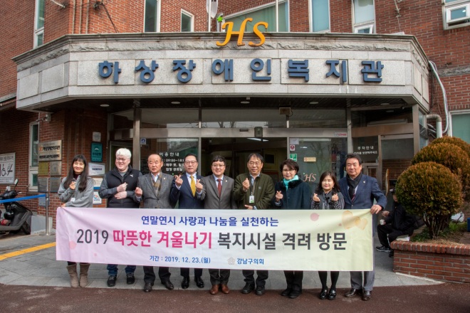 [뉴스카페/이경문기자] 강남구 의회는 연말연시를 맞아 지난 23일 관내 복지시설인 청음복지관, 능인종합사회복지관, 하상장애인복지관을 차례로 방문하여 성금을 전달하고 불편사항을 살펴보는 등 따뜻한 이웃사랑 나눔을 실천했다.