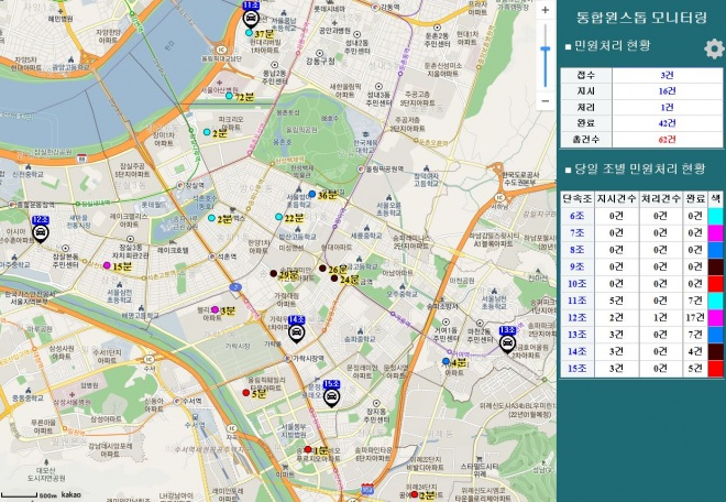 구는 지난 4월, 전국 최초로 관내 모든 주차민원 현황을 지도 위에 시각화한 ‘실시간 통합관제시스템’을 개발했다. 이를 활용, 현장요원을 적재적소에 배치해 건당 처리시간이 평균 1시간 18분에서 1시간 03분으로 20% 단축되고, 월평균 민원 처리건수는 4,000건에서 5,100건으로 늘었다.