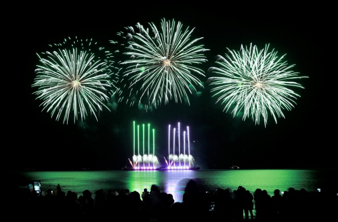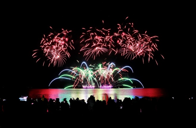 보성군 율포 해변에서 열린 해넘이 불꽃축제는 수많은 인파와 한화에서 제공한 다영한 불꽃으로 어두운 밤을 수놓았다.