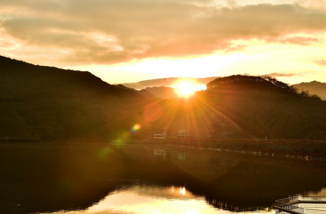 [뉴스카페/이경문기자] 어두운 산자락을 비집고 일어선 새해 첫 햇살이 장성호를 금빛으로 물들였다. 이날 장성호에서 열린 해맞이 행사에는 군민 300여 명이 참여해 옐로우시티 장성의 희망찬 출발을 다짐했다.