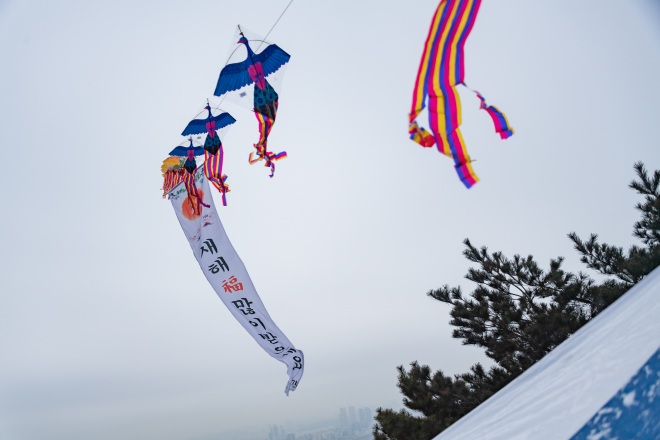 이후 해가 뜨는 시간에 맞춰 새해소망을 담은 연 날리기 퍼포먼스가 펼쳐져 눈길을 끌었다.