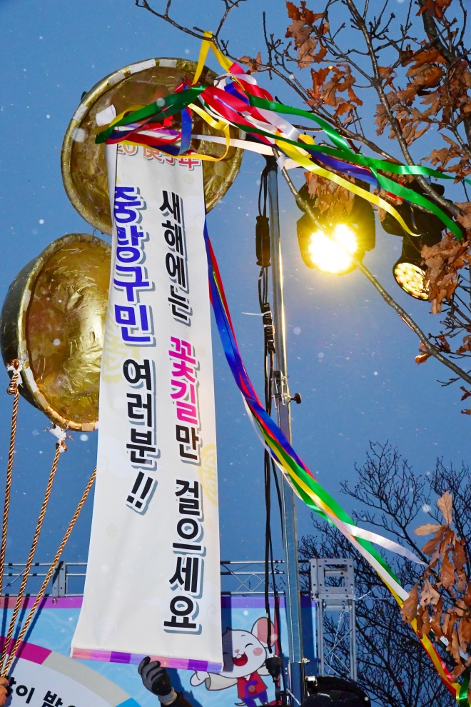 이날 행사는 새해 희망을 여는 남성 중창단의 합창을 시작으로 새해 구민 행복·건강 기원 퍼포먼스, 대박 터트리기, 전통풍물놀이 등을 통해 한 해의 무사 안녕과 구민의 건강과 행복, 구의 발전을 기원했다.