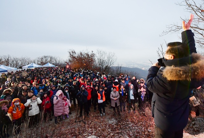 [뉴스카페/이경문기자] 중랑구가 2020년 경자년 새해를 맞아 1일 오전7시 용마산 5보루에서 주민 1000여 명과 함께 ‘2020 중랑 해맞이 행사’를 개최했다.