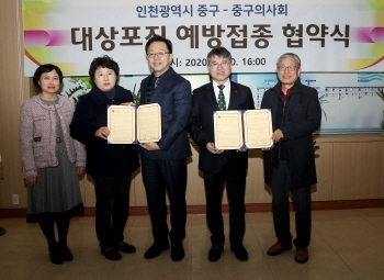 [뉴스카페]인천 중구는 오는 2월부터 만 65세 이상 지역주민 대상 대상포진 예방접종 지원 사업을 실시하기 위해 중구 의사회와 업무협약을 체결했다고 14일 밝혔다.