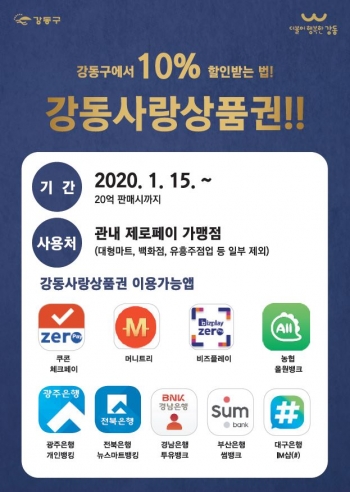[뉴스카페/이경문기자] 강동구가 지역 내 소비 촉진과 소상공인 매출 증대를 위해 1월 15일(수) 오전 10시부터 강동사랑상품권을 발행해 판매를 시작한다.