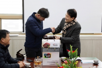 토요시장 특산품판매장 2층에 있는 직거래지원센터에서 티타임을 갖고 환담을 이어간 두 지역의 군수들은 시종일관 화기애애한 분위기 속에서 대화를 진행하였다.
