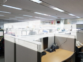 이는 상담원간의 코로나19 감염경로인 비말(침방울) 전파를 막는 예방적 차원에서 이루어진 조치로 상담원을 중심으로 전면과 좌·우측에 해당한다.