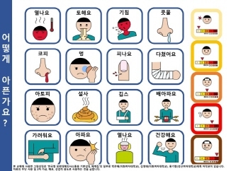 자료에는 어디가 어떻게 아픈지를 표현하는 상황도 포함되어 있어 코로나19 상황에서 장애학생이 자신의 건강 상태를 표현하는 의사소통 도구로도 활용할 수 있다.