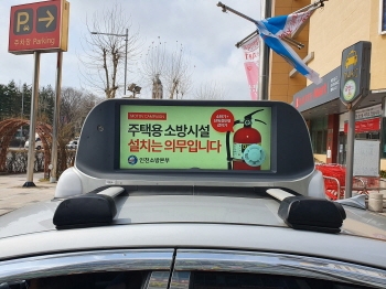 이번 홍보는 주택용 소방시설 설치 촉진을 위해 ㈜모토브와 협업하여 택시 탑 광고판을 이용 “주택용 소방시설(소화기, 감지기) 설치는 의무입니다” 영상을 송출해 홍보에 나섰다.