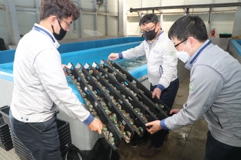 [뉴스카페]한국남동발전(주) 영흥발전본부(본부장 유준석)는 14일 옹진군 자월면 승봉리 지선에서 인천시 수산자원연구소 및 영흥면 관계자 등 20명과 함께 냉각수를 활용한 어패류 양식장에서 기른 전복 치패 10만미를 방류했다.
