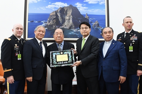 [뉴스카페]윤상현 국회 외교통일위원장은 28일 한미 동맹관계 발전에 기여한 공로를 인정하여 마이클 빌스 주한 미 8군사령관과 김리진 주한미군사령관(초대) 월튼 워커장군 추모사업회장에게 한미동맹을 더욱 굳건히 하고 한국과 미국 간의 우호 증진에 기여한 공로를 인정하여 감사패를 수여했다.