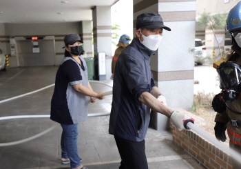 [뉴스카페]인천 부평소방서(서장 오원신)는 9일 십정동에 위치한 파크타운 3차 자위소방대와 함께 합동 소방훈련을 실시했다.