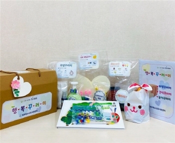 '행복꾸러미'는 코로나19 감염병 예방을 위해 덴탈 마스크, 손 소독제, 거품 비누가 들어간 ‘위생꾸러미’와 마음과 정성을 담은 ‘간식꾸러미’, 놀이 자료와 놀이 방법을 안내한 ‘놀이꾸러미’로 구성돼 있다.