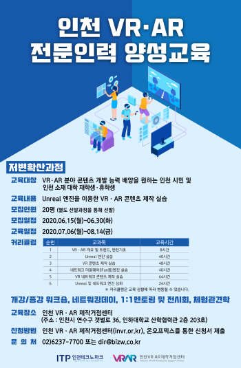 인천TP 관계자는 “VR·AR산업은 포스트 코로나 시대를 이끌 핵심기술 가운데 하나”라며 “앞으로 재직자들의 직무능력 향상을 위한 전문교육과정도 운영할 예정”이라고 말했다.
