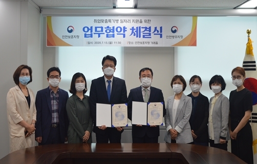 [뉴스카페]인천병무지청(청장 김용진)과 인천보훈지청(청장 임종배)은 13일 인천보훈지청 겨레홀에서 “취업맞춤특기병 전역자에 대한 일자리 지원”을 위한 업무협약을 체결했다.