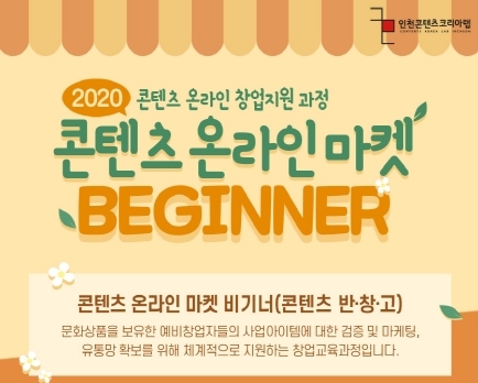 [뉴스카페]인천테크노파크(인천TP)가 운영하는 인천콘텐츠코리아랩은 오는 29일까지 문화상품 창업 교육 과정 ‘콘텐츠 온라인마켓 비기너’ 수강생을 모집한다.