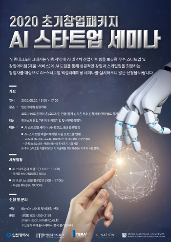 [뉴스카페]인천테크노파크(인천TP)와 인천시는 오는 20일 오후 1시 미추홀구 경인로 229 인천IT타워 2층 인천창업카페에서 ‘인천 인공지능(AI)-스타트업 세미나’를 연다고 17일 밝혔다.