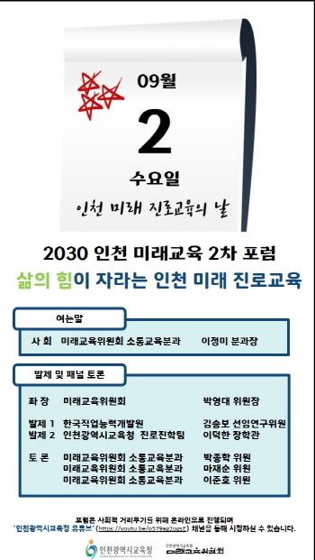 [뉴스카페]인천광역시교육청(교육감 도성훈)은 9월 2일 인천광역시 미래교육위원회 ‘2030 인천미래교육 2차 포럼’을 개최한다고 밝혔다.