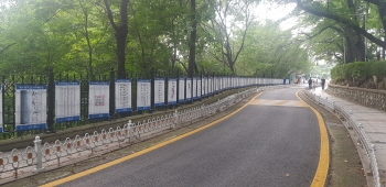 구는 대한민국 임시정부 수립 101주년을 맞아 지난 3월 전국 규모의 제1회 백범김구 서예대전 공모전을 개최하고 입선한 작품을 자유공원에 전시하고 있다.
