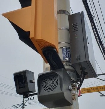 보행신호 음성안내 보조장치는 횡단보도 앞에서 대기하던 보행자가 차도로 내려오거나 대기선을 넘을 경우 센서가 작동해 “위험하오니 뒤로 물러나 주세요”라는 경고 방송이 나온다. 보행자의 안전한 보행을 돕고 무단횡단을 방지하기 위한 장치다.