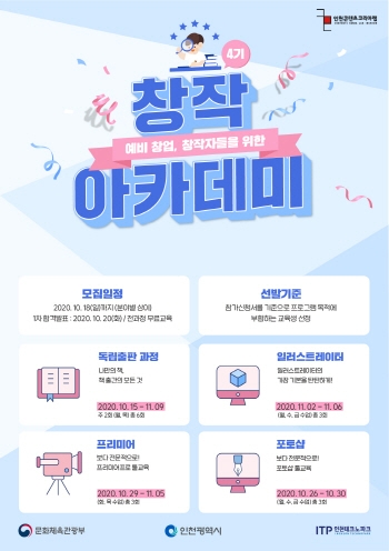 [뉴스카페]인천테크노파크(인천TP)가 운영하는 인천콘텐츠코리아랩은 오는 18일까지 문화 콘텐츠 창작프로그램 ‘창작아카데미’에 참여할 수강생을 모집한다고 8일 밝혔다.