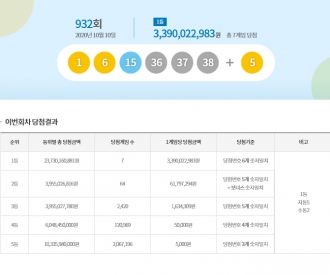 [뉴스카페]10일 추첨한 동행복권 932회 로또6/45 1등 당첨자는 7명으로 1인당 33억9,002만원씩의 당첨금을 받는다.