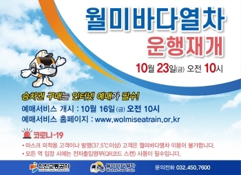정희윤 인천교통공사 사장은 “깊어가는 가을, 오색의 월미공원 단풍과 함께 월미바다열차에서 소중한 추억을 담아가시기 바란다”며, “고객님과 타인의 건강과 안전을 위해 마스크 착용 등 방역수칙을 반드시 지켜주시길 당부드린다”고 말했다.