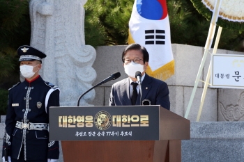 [뉴스카페]박병석 국회의장은 23일 오후 국립서울현충원에서 열린 홍범도장군 77주기 추모식에 참석해 “독립전쟁 100주년인 올해를 기점으로 항일무장투쟁 역사를 체계적으로 복원해야 한다. 역사에 기록되지 않은 수많은 독립 운동가들의 삶을 발굴하고 기려야 한다”고 말했다.
