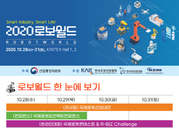 산업통상자원부 주최로 올해 15번째로 열리는 ‘로보월드’는 산업용·서비스·협동·물류로봇과 드론, 스마트제조 솔루션 등의 분야에 20여 개국 150여 개사가 참가한다. 주최 측은 해외바이어 등 5만여 명 이상의 방문객이 찾을 것으로 보고 있다.