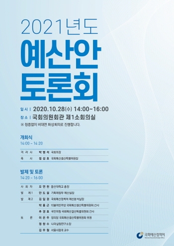 [뉴스카페]국회예산정책처는 '2021년도 예산안 토론회'를 오는 28일 오후 2시 의원회관 제1소회의실에서 개최한다.